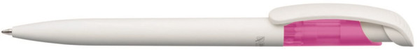 Druckkugelschreiber mit Gehäuse und Clip aus 100% nachwachsendem und kompostierbarem Material. Oberteil aus gefrostetem ABS Kunststoff.