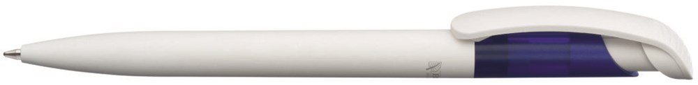 Druckkugelschreiber mit Gehäuse und Clip aus 100% nachwachsendem und kompostierbarem Material. Oberteil aus gefrostetem ABS Kunststoff.