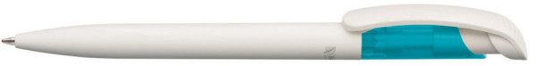 Druckkugelschreiber mit Gehäuse und Clip aus 100% nachwachsendem und kompostierbarem Material. Oberteil aus gefrostetem ABS Kunststoff.
