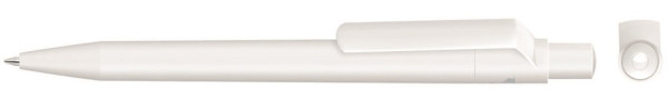 Druckkugelschreiber mit gedeckt mattem Gehäuse, Clip, Drücker und Stopfen aus recyceltem ABS-Kunststoff.