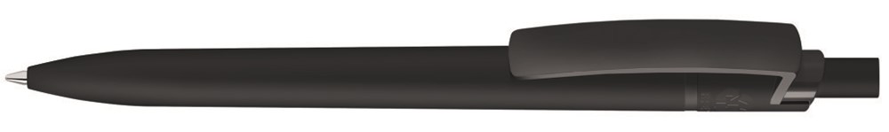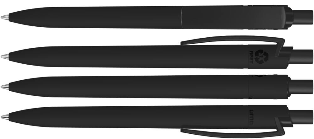 Druckkugelschreiber mit gummiertem Gehäuse aus recyceltem PET-Material mit matt gedecktem Clip und Drücker.