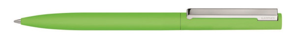 Metall-Drehkugelschreiber mit Softtouch-Gehäuse und gefedertem Metallclip silber glänzend.