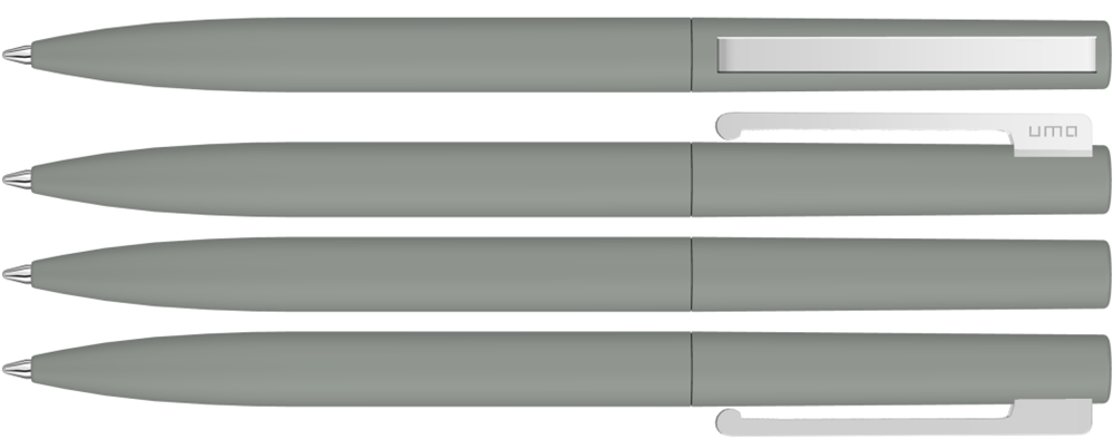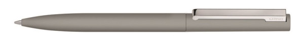 Metall-Drehkugelschreiber mit Softtouch-Gehäuse und gefedertem Metallclip silber glänzend.