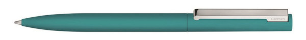 Metall-Drehkugelschreiber mit Softtouch-Gehäuse und gefedertem Metallclip silber glänzend.