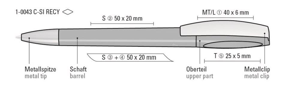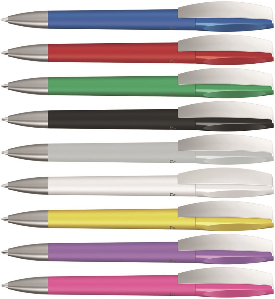 Drehkugelschreiber mit gedeckt mattem Gehäuse aus 100% recyceltem Post-Consumer-Kunststoff. Metallclip und schwere Metallspitze matt verchromt. Das Modell ist mit dem Recyclingzeichen gekennzeichnet. Dank der ClimatePartner-zertifizierten Produktion leistet der uma CHILL C SI RECY einen zusätzlichen nachhaltigen Beitrag zur Schonung der Umwelt. Aufgrund der Besonderheit des Materials (Post-Consumer Recycled Plastic) sind produktionstechnische Farbschwankungen gegeben.