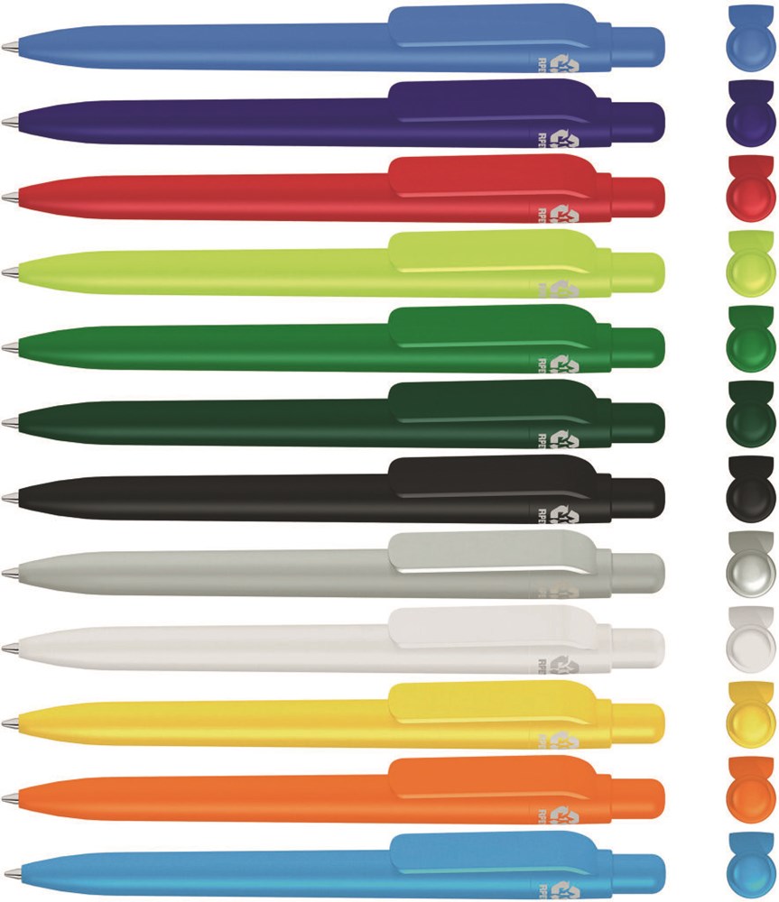 Druckkugelschreiber aus recyceltem PET-Material mit matt gedecktem Gehäuse, Clip, Drücker und... mehr