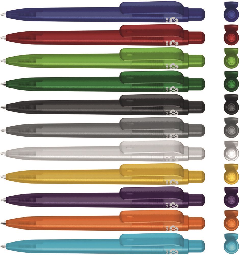 Druckkugelschreiber aus recyceltem PET-Material mit transparent gefrostetem Gehäuse, Clip,... mehr