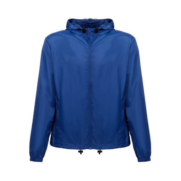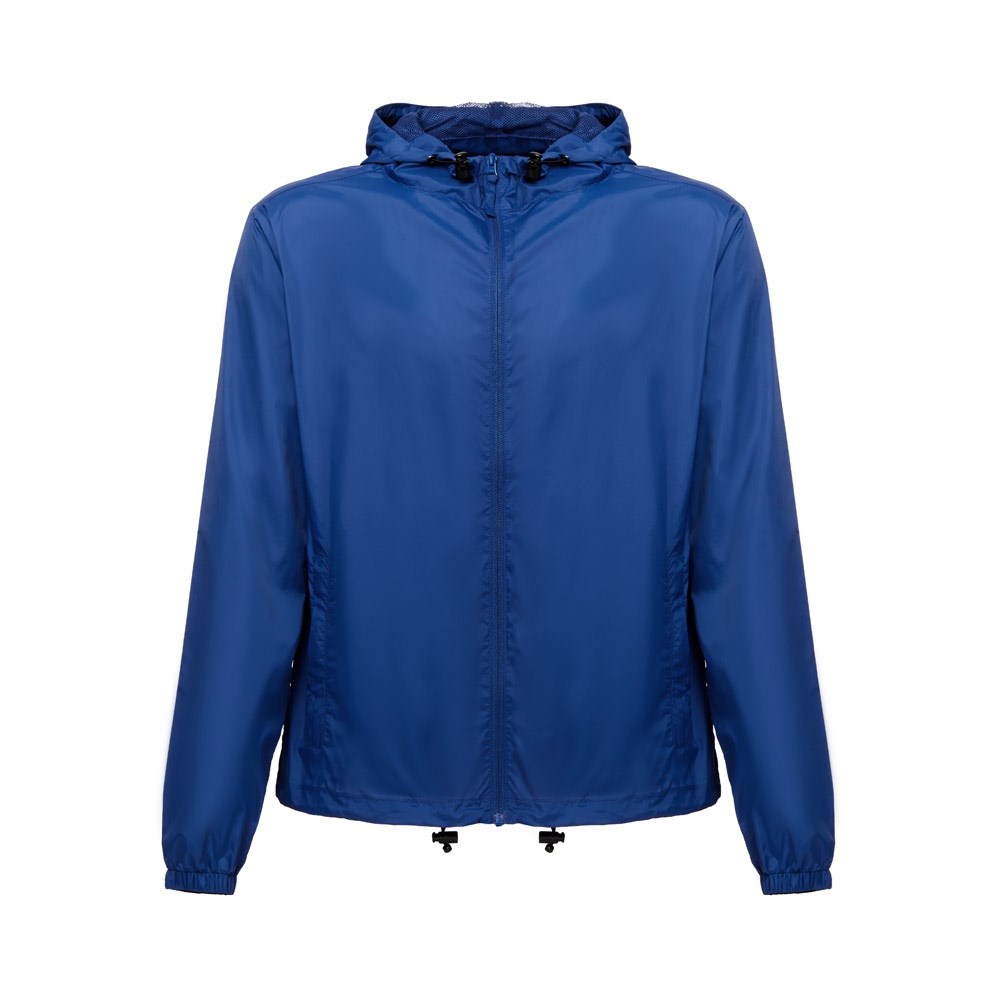 Wasserdichte Windjacke (Unisex) aus 100 % recyceltem Nylontaftgewebe (65 g/m²). Vordere Öffnung mit YKK®-Reißverschluss - eine Marke, die moderne Ausrüstung und hohe Qualitätskontrolle verwendet. Die Kapuze ist mit Mesh bezogen und hat Kordelzüge zum Zuziehen. Sie hat Ösen für eine gute Belüftung, einen elastischen Verschluss mit Stoppern am Saum und Seitentaschen mit Reißverschluss. Größen: XS, S, M, L, XL, XXL
