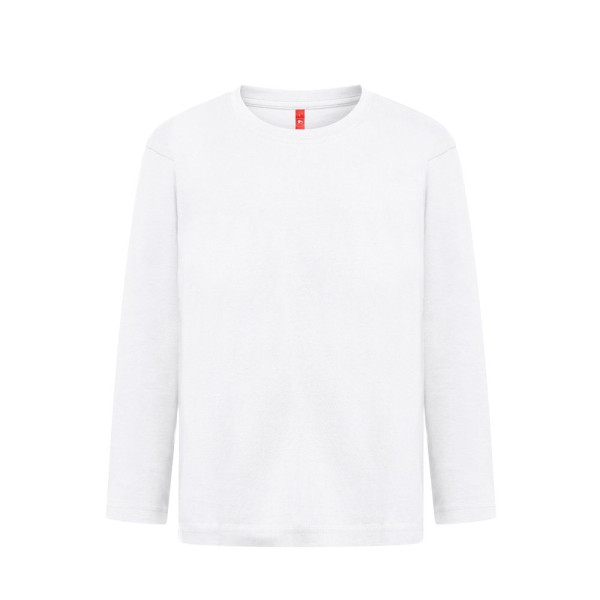 Langarm Oberteil (150 g/m²) mit enzymatischer Behandlung, für Kinder aus Jersey-Stoff (100 % Baumwolle aus nachhaltigem Anbau). Kragen aus 1x1-Rippe mit Verstärkungsband aus Jersey. Schlauchförmiges T-Shirt mit regelmäßigem Schnitt und doppelten Nähten an den Ärmeln und am Saum. Größen: 2, 4, 6, 8, 10, 12