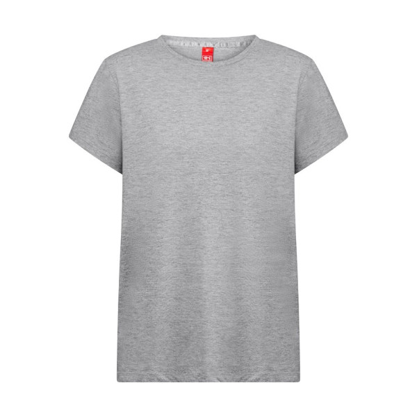 Regulär geschnittenes T-Shirt für Frauen (150 g/m²) mit enzymatischer Behandlung aus Jersey-Stoff (100 % Baumwolle aus nachhaltigem Anbau). Es hat einen dünnen doppelten Kragen aus Jersey mit einem Verstärkungsband aus Satin. Geschnitten und genäht mit doppelten Nähten an den Ärmeln und an der Unterseite. Größen: XS, S, M, L, XL, XXL