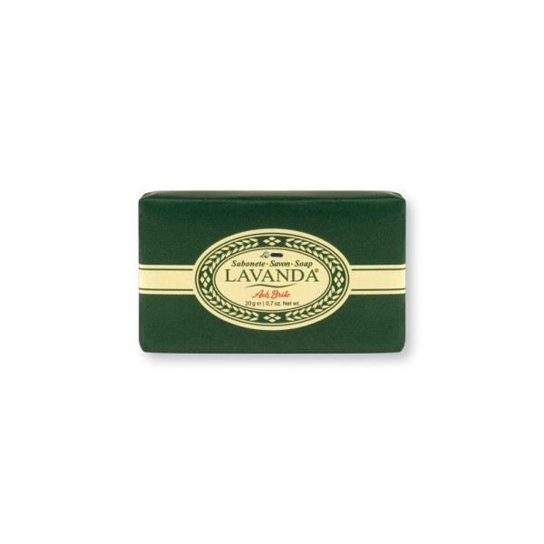 Seife mit pflanzlicher Seifenbasis und Lavendelduft, mit einer weichen Textur, die die Haut parfümiert lässt. Ihr kleines Format ist ideal für den Transport in der Sporttasche oder auf Reisen. Traditionell in Portugal hergestellt. Inhalt 20 g. Klassische Verpackung, die das ursprüngliche Design beibehält, mit grünem Hintergrund und kleinen Grafiken, die Lavendelblüten darstellen. 59 x 34 x 10 mm