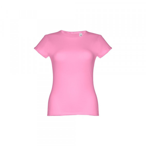 Damen T-shirt aus Strickjersey und 100% Baumwolle (150 g/m²), kurzarm mit kardiertem Baumwollfaden. Bei der Farbe 183 bestehend aus 90% Baumwolle und 10% Viskose. Schmaler Jersey-Kragen mit Satin-Verstärkungsband. Doppelnaht an Ärmeln und Saum. Tailliert. Größe: 3XL
