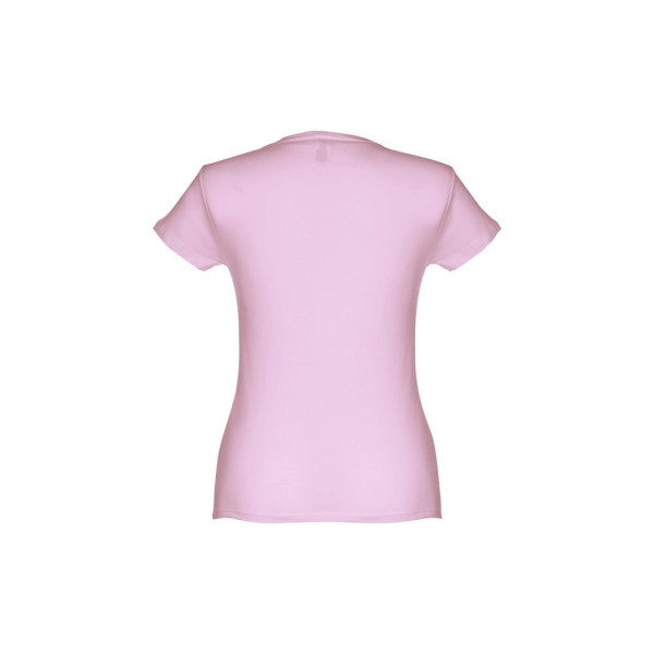 Damen T-shirt aus Strickjersey und 100% Baumwolle (150 g/m²), kurzarm mit kardiertem Baumwollfaden. Bei der Farbe 183 bestehend aus 90% Baumwolle und 10% Viskose. Schmaler Jersey-Kragen mit Satin-Verstärkungsband. Doppelnaht an Ärmeln und Saum. Tailliert. Größe: 3XL