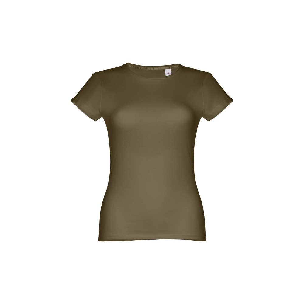 Damen T-shirt aus Strickjersey und 100% Baumwolle (150 g/m²), kurzarm mit kardiertem Baumwollfaden. Bei der Farbe 183 bestehend aus 90% Baumwolle und 10% Viskose. Schmaler Jersey-Kragen mit Satin-Verstärkungsband. Doppelnaht an Ärmeln und Saum. Tailliert. Größe: 3XL