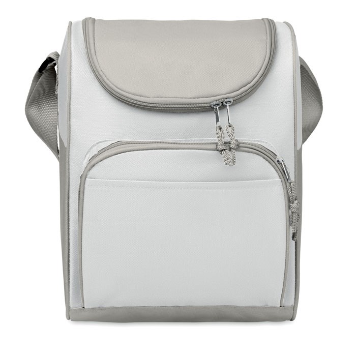 Kühltasche mit Fronttasche. 600D Polyester. Isoliermaterial: Aluminiumfolie. Füllmenge 13L.