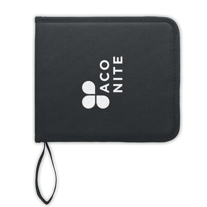 40-teiliges Skizzen- und Zeichenset: 14 Buntstifte, 12 Farbstifte, 1 Sandpapierblock, mehrere Graphitstifte, 1 holzfreier Graphitstift, 3 Verwischstifte, 1 Bleistiftverlängerer, 1 Bleistiftspitzer, 1 Radiergummi, 1 Pinsel, 1 Bastelmesser. Lieferung im robustem 450D RPET-Polyester-Etui.