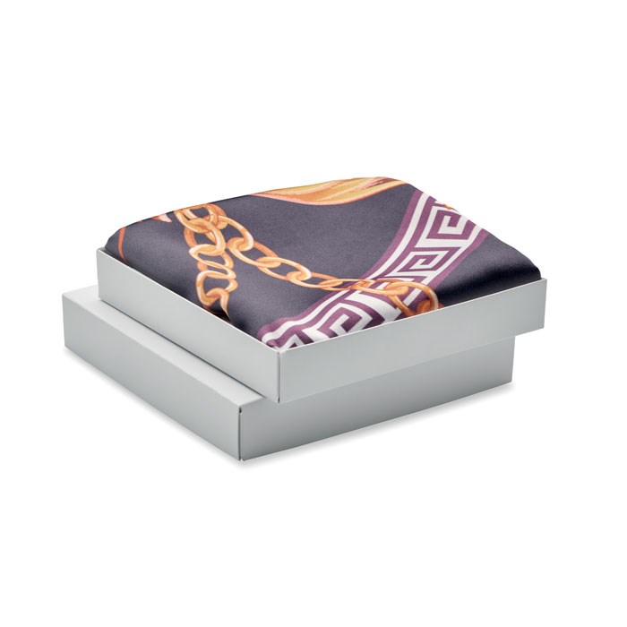 Gemusterter Schal aus recyceltem Satin-Polyester.
