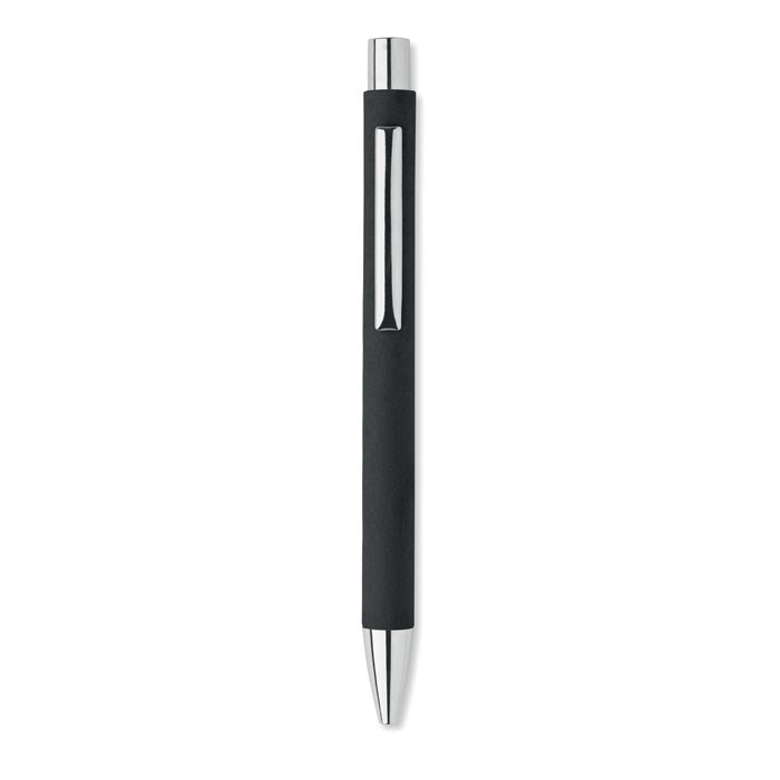 Druckkugelschreiber aus recyceltem Papier, Metallclip und Details aus Kunststoff. Blaue Tinte.