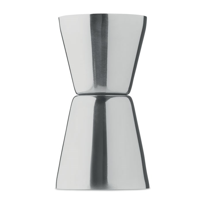 Doppelseitiger Messbecher aus Edelstahl. Füllmenge: 25 und 40 ml.