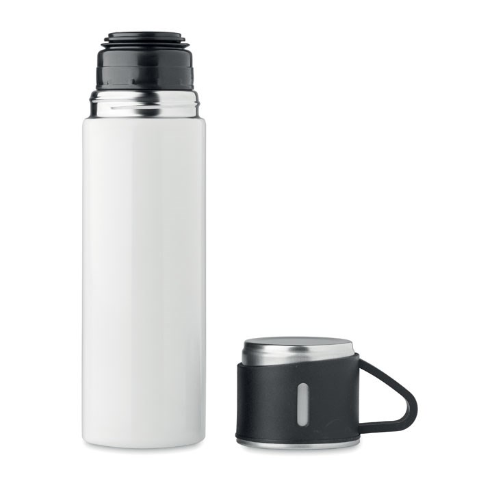 Set bestehend aus doppelwandiger Isolierflasche sowie 1 passenden Becher. Der Becher kann als Deckel genutzt werden. Edelstahl. Füllmenge: Flasche 420 ml, Becher 150 ml.