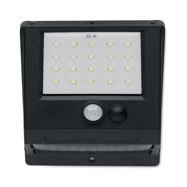 Solarbetriebene LED-Leuchte mit 20 LEDs. Bewegungs- und Nachtsensor. PIR (Passiv-Infrarot-Sensor) Bewegungssensor. CDS-Nachtsensor. Schutzart: IP 44. Akkukapazität: 800 mAh.