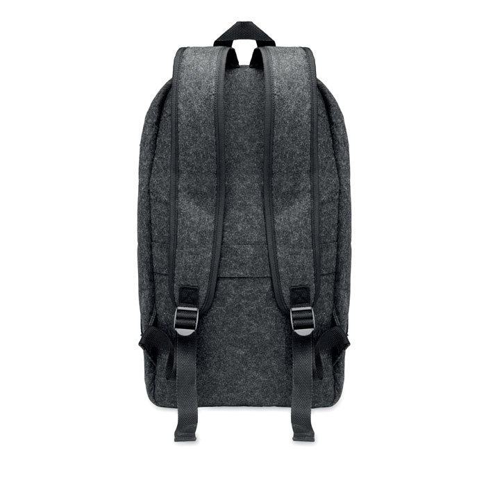 13'''' Laptop Rucksack aus RPET-Filz. Großes Hauptfach und Reißverschlussfach. Gepolsterte Rückseite und gepolsterte Schultergurte. Trolley-Halterung.