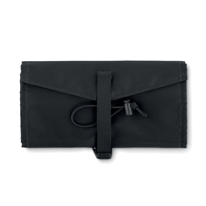 Rolltasche aus 210D RPET zur Aufbewahrung von Kabeln. 3 Reißverschlussfächer mit REPT-Netz. Auch ideal als Kosmetiktasche.