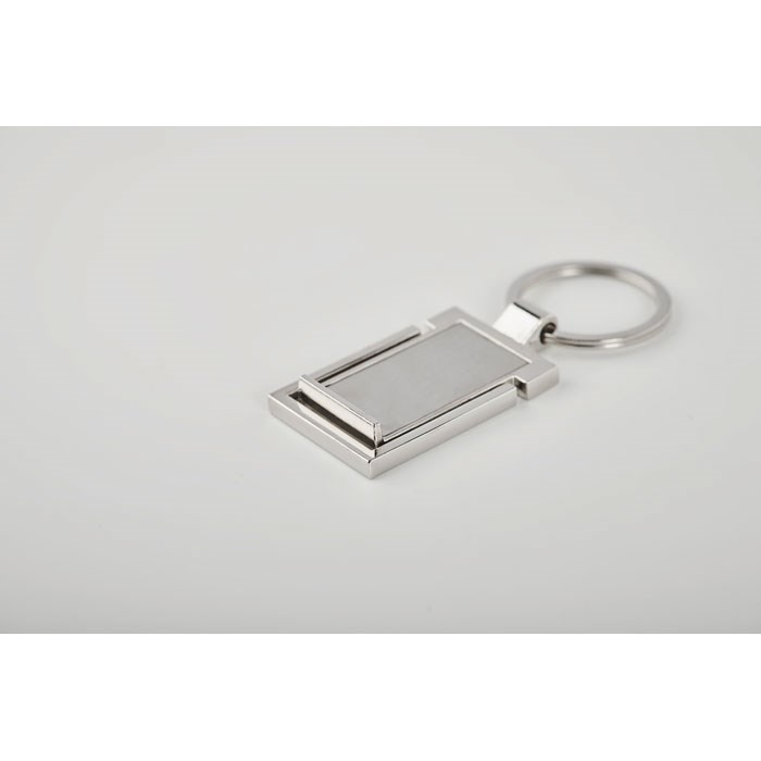 Schlüsselring mit Anhänger aus Metall mit Funktion eines Smartphone-Halters. mehr