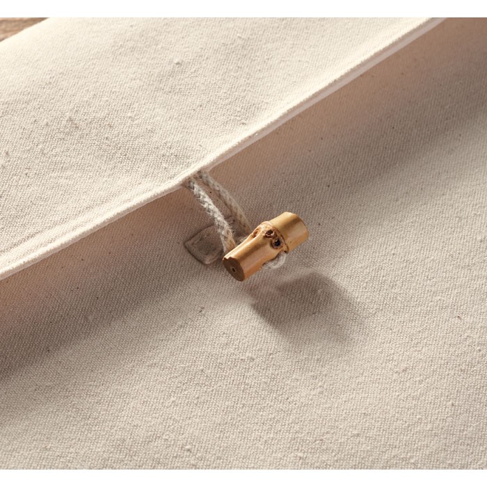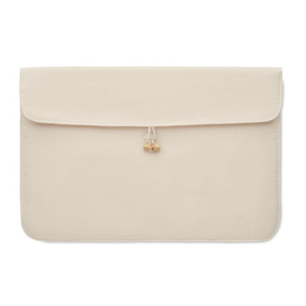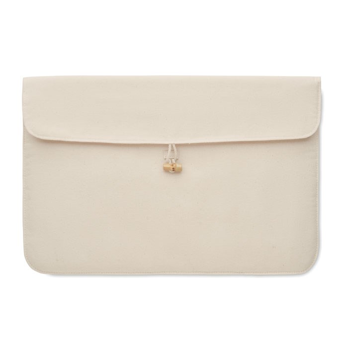Gepolsterte 15'''' Laptoptasche aus Baumwolle 220 g/m². Innenfutter 120 g/m². Bambus-Knebelverschluss.