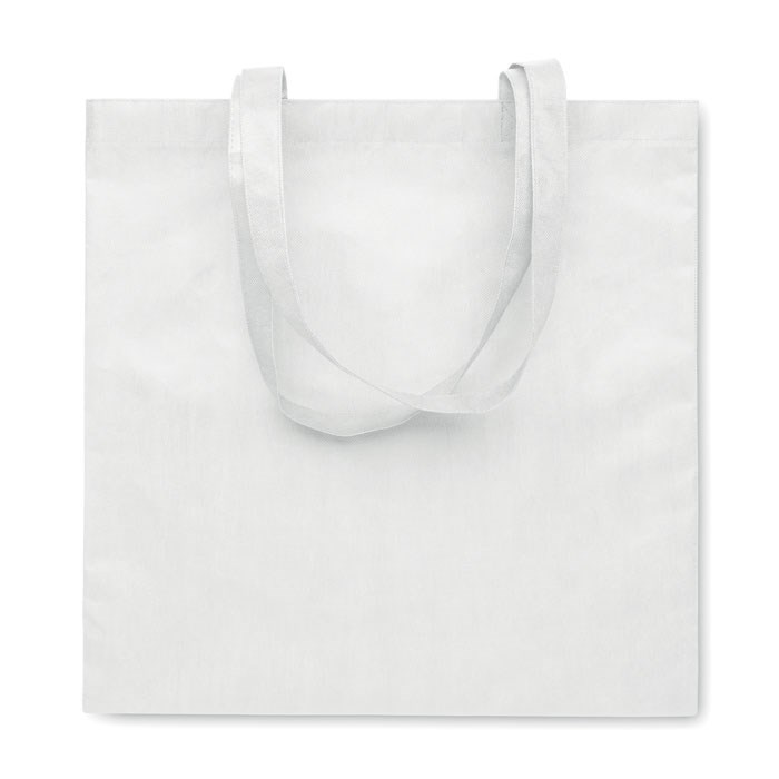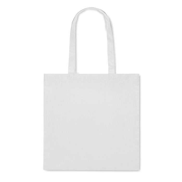 Einkaufs- oder Strandtasche aus RPET-Non Woven mit Seitenfalz und langen Tragegriffen. 80 g/m².