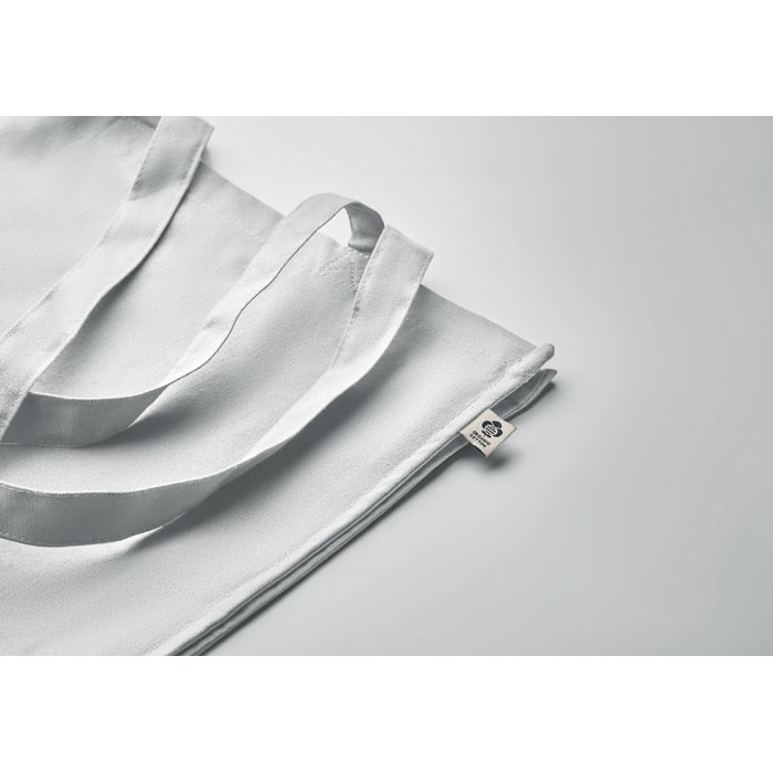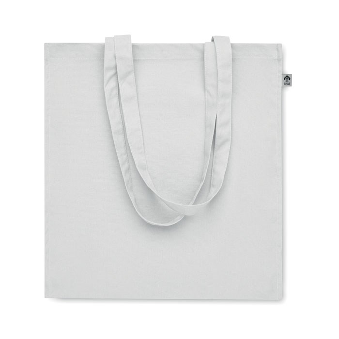 Einkaufstasche aus Organic Cotton mit langen Tragegriffen und Bodenfalz. 220 g/m².