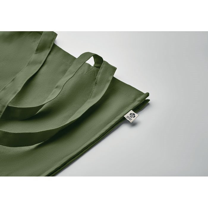 Einkaufstasche aus Organic Cotton mit langen Tragegriffen und Bodenfalz. 220 g/m².