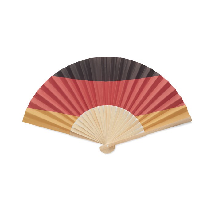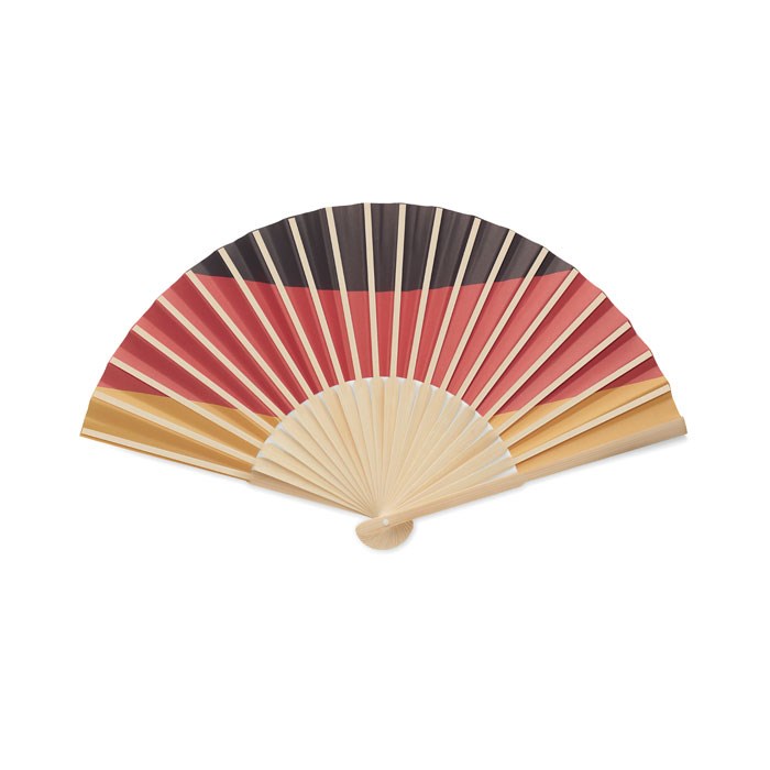 Fächer aus Bambus mit Papierbespannung. Erhältlich in verschiedenen Flaggen-Farben.