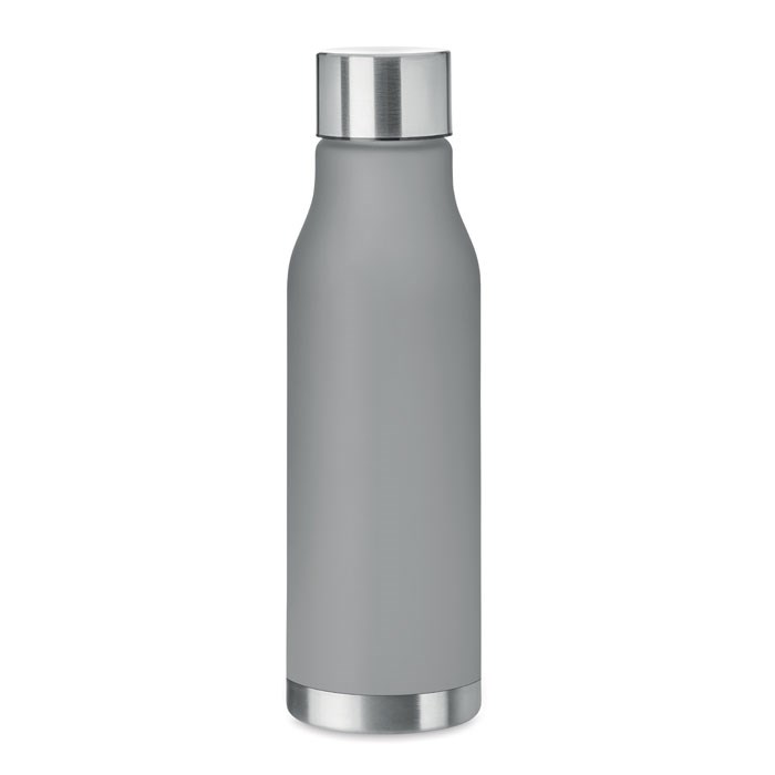 Trinkflasche aus RPET mit gummierten Finish und Verschluss aus Edelstahl mit RPET im Inneren und Silikon Dichtungsring. BPA frei. Füllmenge: 600 ml. Nicht geeignet für kohlensäurehaltige Getränke. Auslaufsicher.