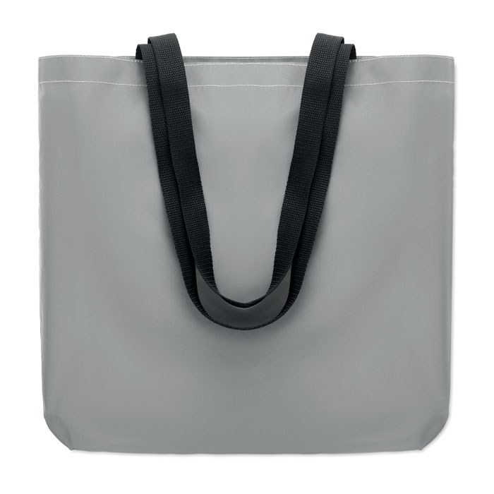 Einkaufstasche aus hoch reflektierendem 190D Polyester mit langen Griffen.