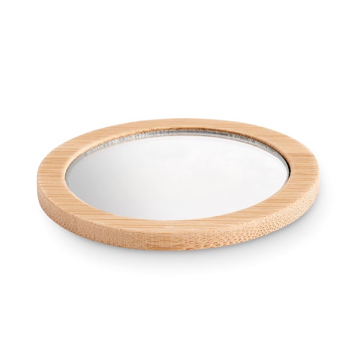 Runder Make-up Spiegel. Bambus. Lieferung im Beutel aus Baumwolle mit Kordelzug. Der Spiegel hat... mehr