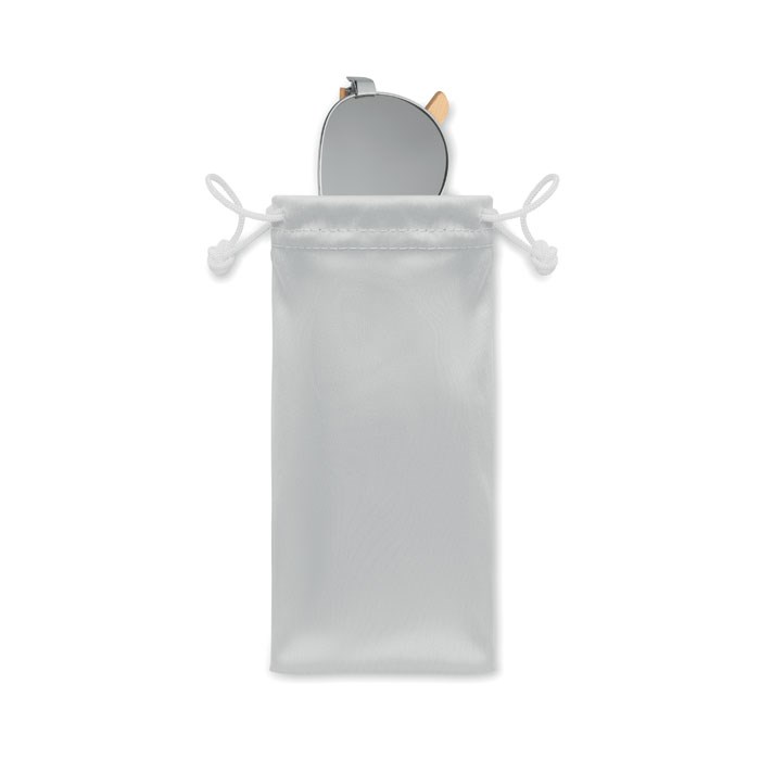 Sonnenbrille mit Bügeln aus Bambus. Farbig verspiegelte Gläser. UV400-Schutz. Inkl. Brillenbeutel aus Mikrofaser Bambus ist ein natürliches Produkt, es kann daher zu leichten Abweichungen in Farbe, Dekor und Maßen kommen.