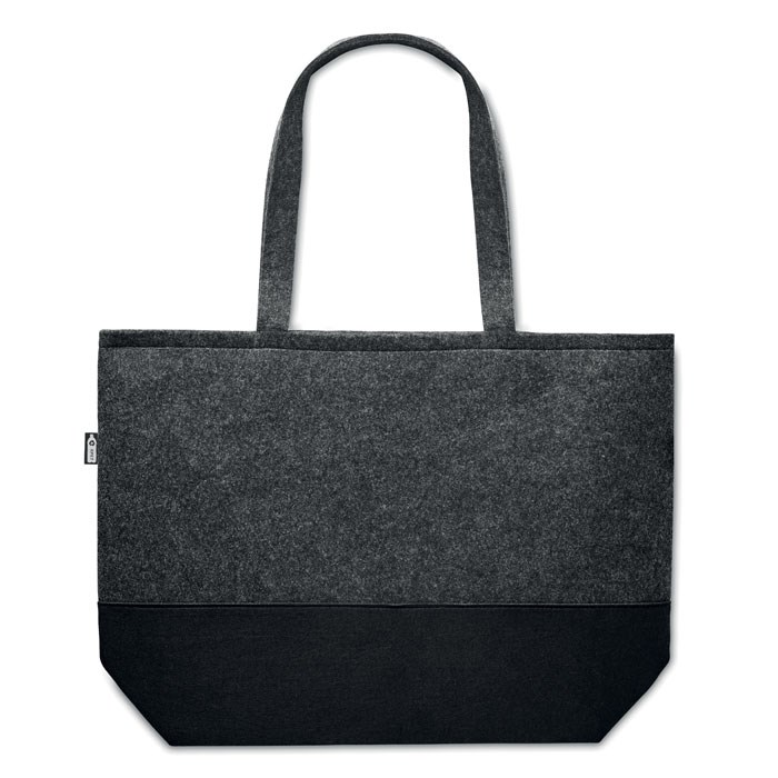 Einkaufstasche aus RPET-Filz mit langen Tragegriffen und farbig abgesetztem Boden.