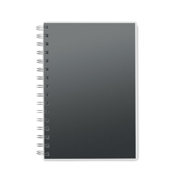 DIN A5-Notizblock. 80 Blatt liniertes Papier. Spiralbindung. Umschlag aus RPET.