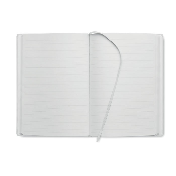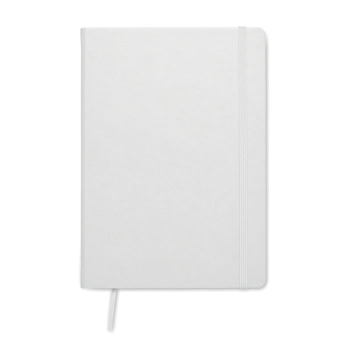 DIN A5 Notizbuch mit Hard Cover aus PU. 100 Blatt (200 Seiten) liniertes Recyclingpapier (80 g/m²). Farblich passendes elastisches Verschlussband und Lesebändchen. Hergestellt in der EU.