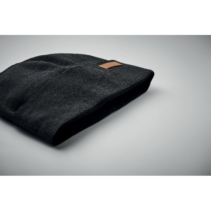 Doppellagige Beanie aus Acryl. 30% reflektierender Faden. Unisex. Mit Label zur Werbeanbringung. Nur für Werbezwecke geeignet.