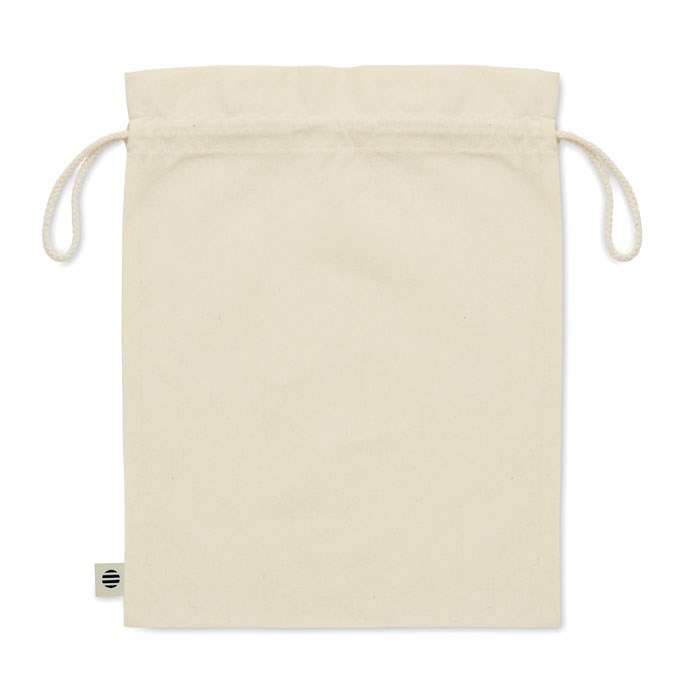 Beutel mit Kordelzug in mittlerer Größe. Organic Cotton. 105 g/m². Maße: 25 x 32 cm.