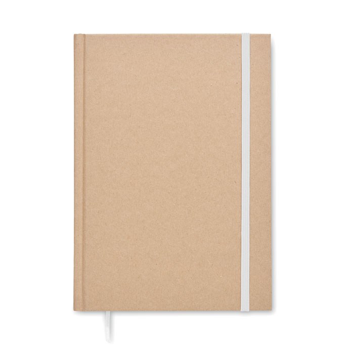 DIN A5 Notizbuch mit Hard Cover aus recyceltem Karton. 200 Blatt (100 Seiten) liniertes Recyclingpapier (80 g/m²). Elastisches Verschlussband und Lesebändchen. Hergestellt in der EU.