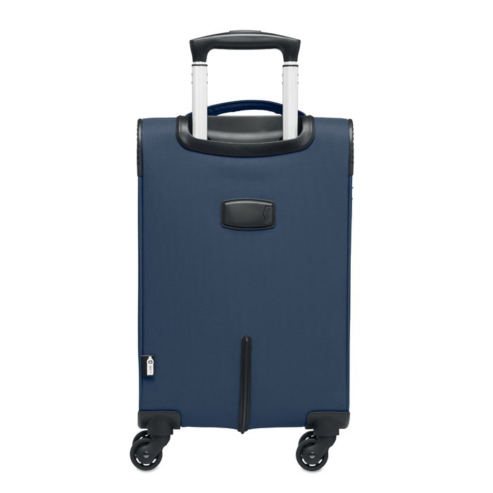 Kabinen Trolley aus 600D RPET Polyester. Außenfach mit Reißverschluss sowie Fronttasche mit Reißverschluss. Mit integriertem Zahlenschloss.