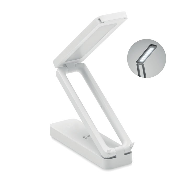 Faltbare Tischleuchte mit 14 LEDs, 3 Helligkeitsstufen und kabelloser Ladestation. Ausgang: DC 9V/1.1A (10W) für schnelles Aufladen. ABS. Kompatibel mit den neuesten Androiden, iPhone® 8 und neueren Modellen.