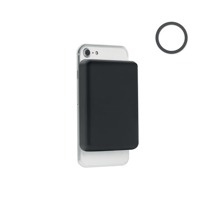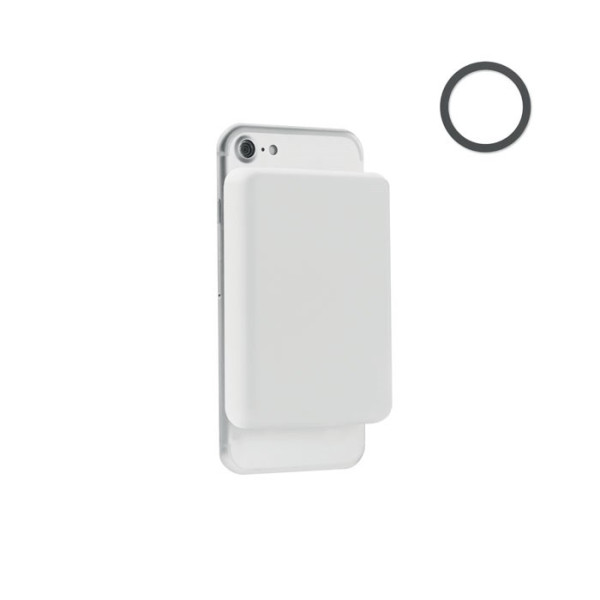 Magnetische Powerbank 5000 mAh mit kabellosem Ladegerät 10 W. Ausgang: DC 9V/1 ,1A (15W), ideal zum schnellen Aufladen. Inkl. magnetischen Metallring zur Unterstützung anderer nicht-magnetischer, wireless aufladbarer Telefone. Eingang/Ausgang: Typ-C.