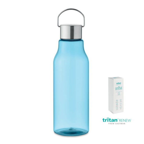 Trinkflasche aus Tritan Renew™. BPA-frei. Verschluss aus Edelstahl mit Henkel. Auslaufsicher. Füllmenge: 800 ml. Dieses Produkt wird aus Material mit bis zu 50% Recyclinganteil hergestellt. ISCC zertifiziert.