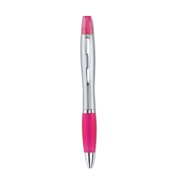 2in1 Kunststoff-Kugelschreiber mit Textmarker. Blaue Tinte.