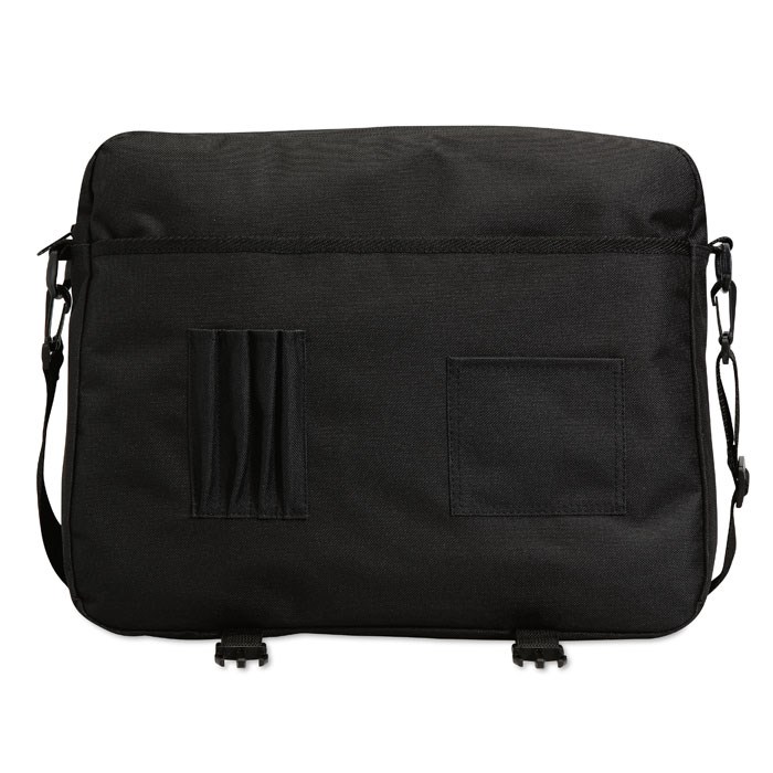 Dokumententasche mit mehreren Fächern. Hauptfach mit Reißverschluss und verstellbarem Schultergurt. Diverse Innenfächer. 600D Polyester.