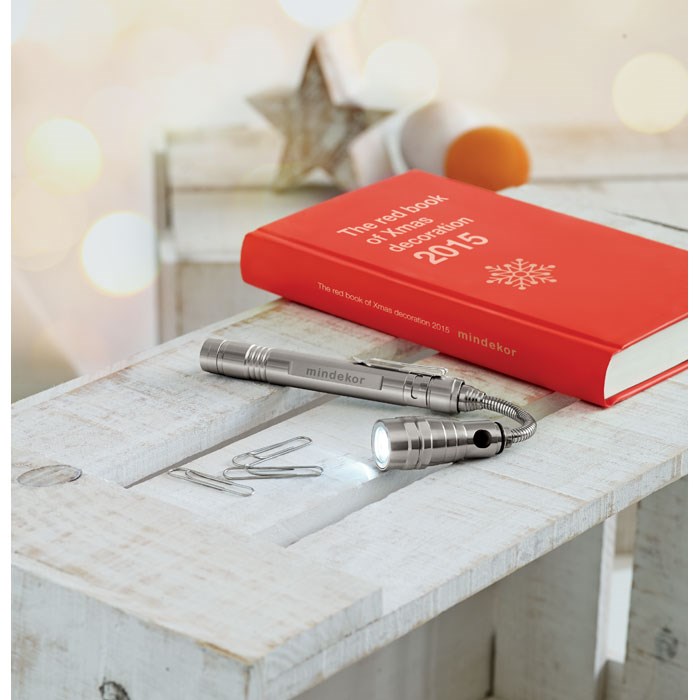 Teleskop Taschenlampe mit 3 LED Leuchten. Der obere Teil der Lampe ist flexibel und mit einem Magneten ausgestattet. Seitlicher Clip. Maximale Länge ausgezogen 57 cm. Inklusive 4 x LR44 Batterien.